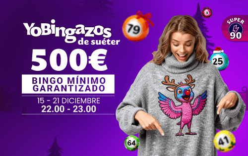 En YoBingo nos gusta hacer que las cosas sean siempre interesantes. Por eso tenemos partidas especiales todas las semanas, con bingos garantizados de un mínimo de hasta 3.000€. También ofrecemos cartones de bingo baratos –de solo 1, 2, 5 o 10 céntimos–, que puedes conseguir en ciertos momentos del día (consulta nuestro calendario).