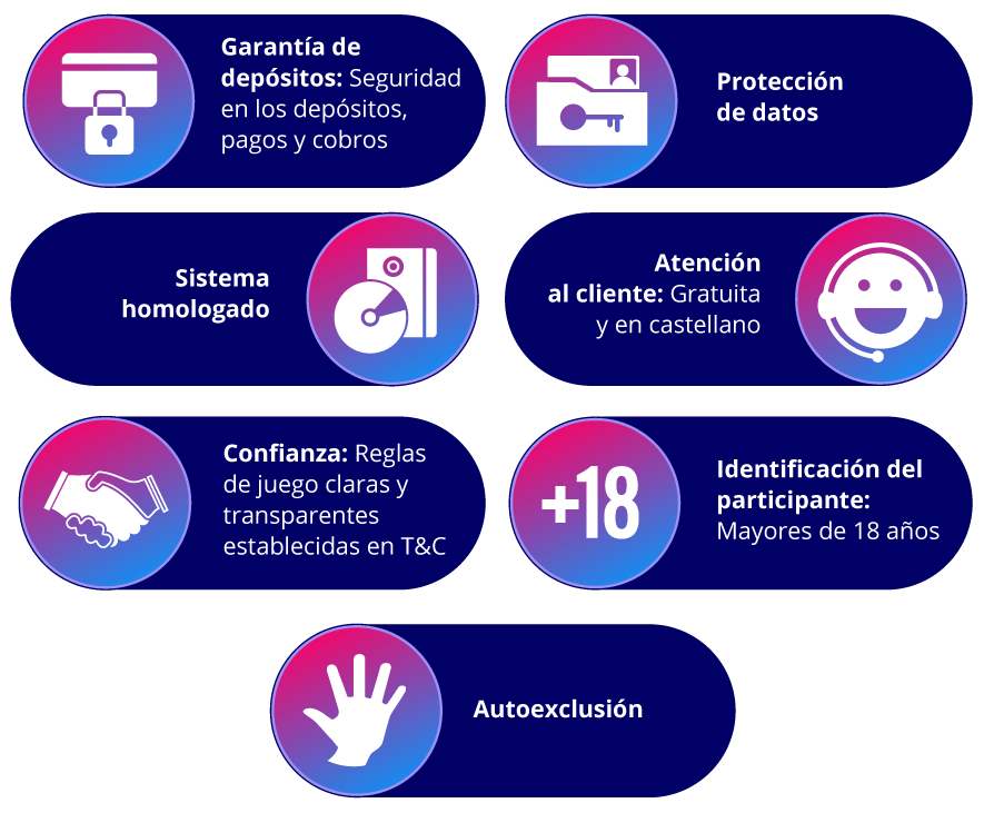 Por último, ten en cuenta que nuestros departamentos están en continua formación en materia de Juego Responsable y Juego seguro para poder ofrecerte mejor orientación y apoyo en caso de que lo necesites. Nuestro objetivo es que puedas disfrutar de un entorno seguro y regulado con el máximo de garantías.